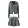 European-American Autumn Retro French Hooded Cardigan & Half Skirt Set