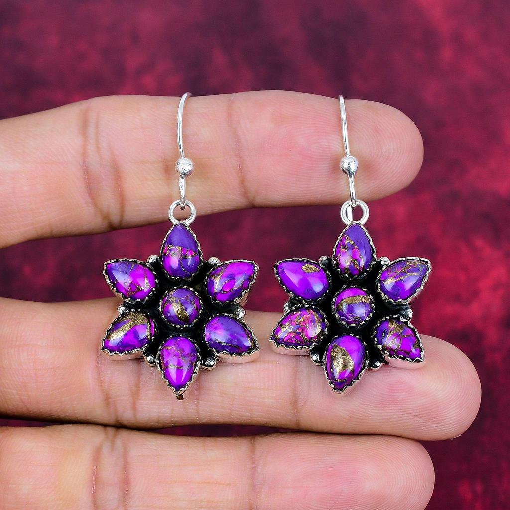 Cercei cu turcoaz și cupru violet, bijuterii din argint 925 masiv, cercei cu pietre prețioase, cadou pentru ea, bijuterii delicate lucrate manual — cumpără ieftin în cadrul magazinului online Joom