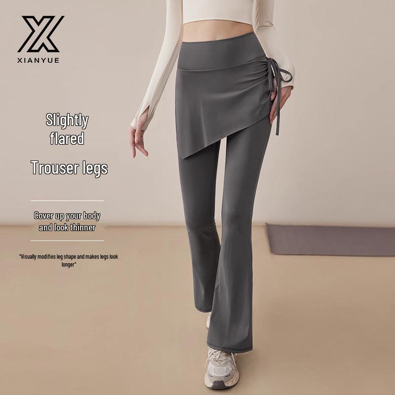 Pantaloni fustă de yoga pentru femei 2025: Pantaloni lungi eleganți tip două piese false, micro evazați, pentru alergare și fitness, pentru primăvară