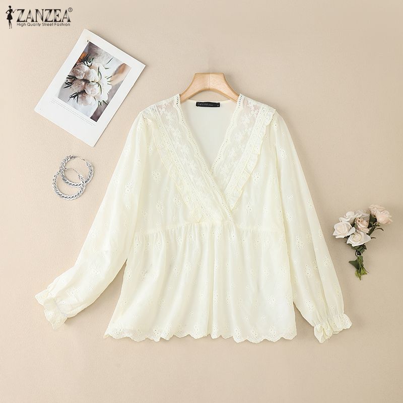 ZANZEA Women Casual V Neck Long Sleeve Crochet Patchwork Loose Blouse — cumpără ieftin în cadrul magazinului online Joom