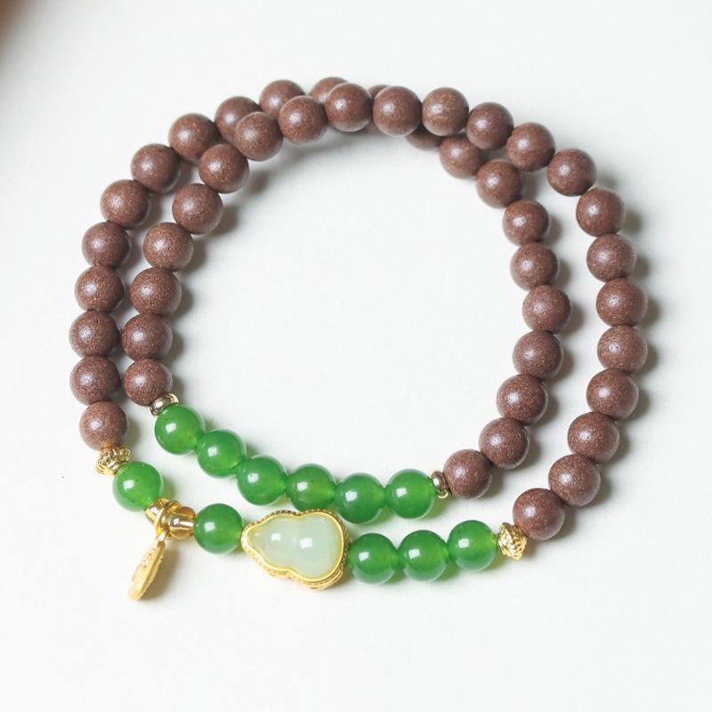 Guiyuan He Xiang Jade Gourd Bracelet: 0.6 Double Circle, Unisex Style, Chinese Herbal Medicine Beads, Buddhist Wenwan Hand String.