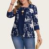 2025 Plus Size Floral Print Casual Two-Piece Seven-Sleeve Top for Women