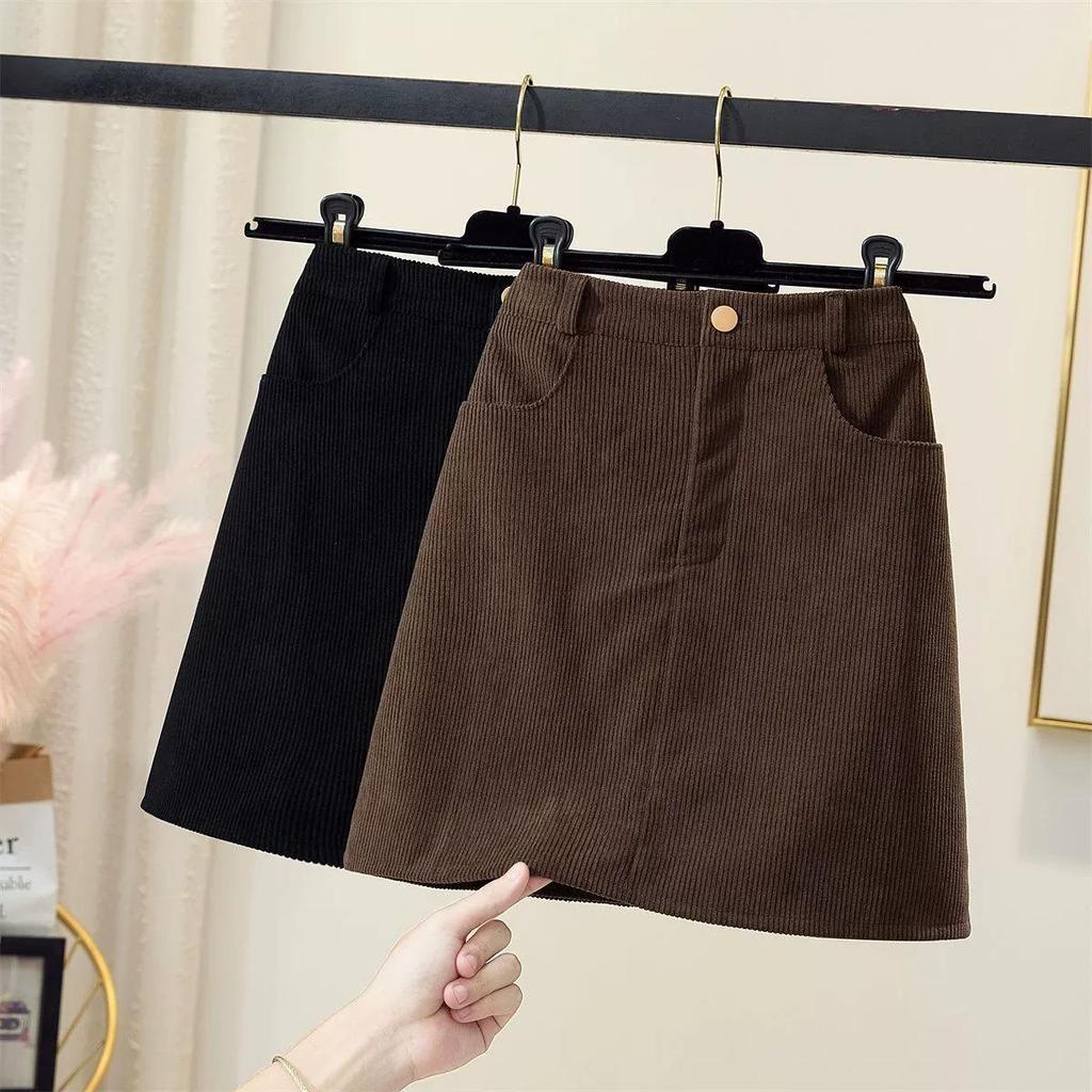 Fustă Midi A-Line Bodycon Neagră din Catifea Cord - Subțiază & Versatilă, Perfectă pentru Toamnă/Iarnă. — cumpără ieftin în cadrul magazinului online Joom