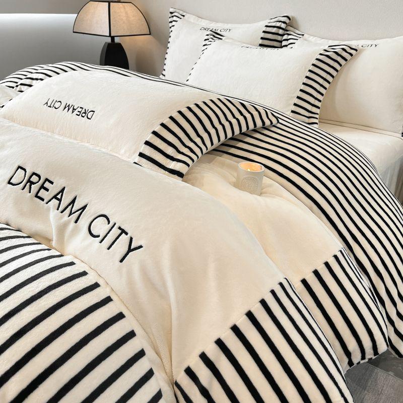 Luxurious Embroidered Milk Velvet 4-Piece Bedding Set - Winter Double-Sided Flannel with Thick Duvet and Coral Fleece Sheets — cumpără ieftin în cadrul magazinului online Joom