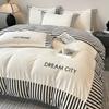 Luxurious Embroidered Milk Velvet 4-Piece Bedding Set - Winter Double-Sided Flannel with Thick Duvet and Coral Fleece Sheets