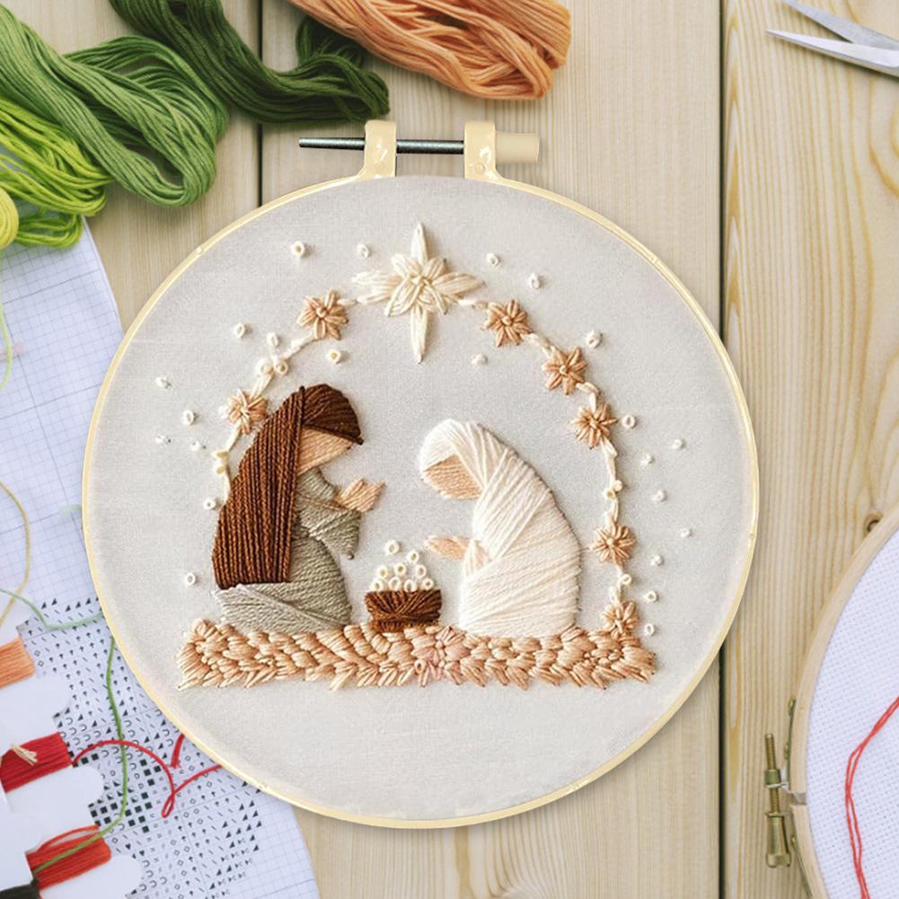 Nativity Stamped Cross Stitch Embroidery Kits with Hoop Cloth Color Thread