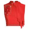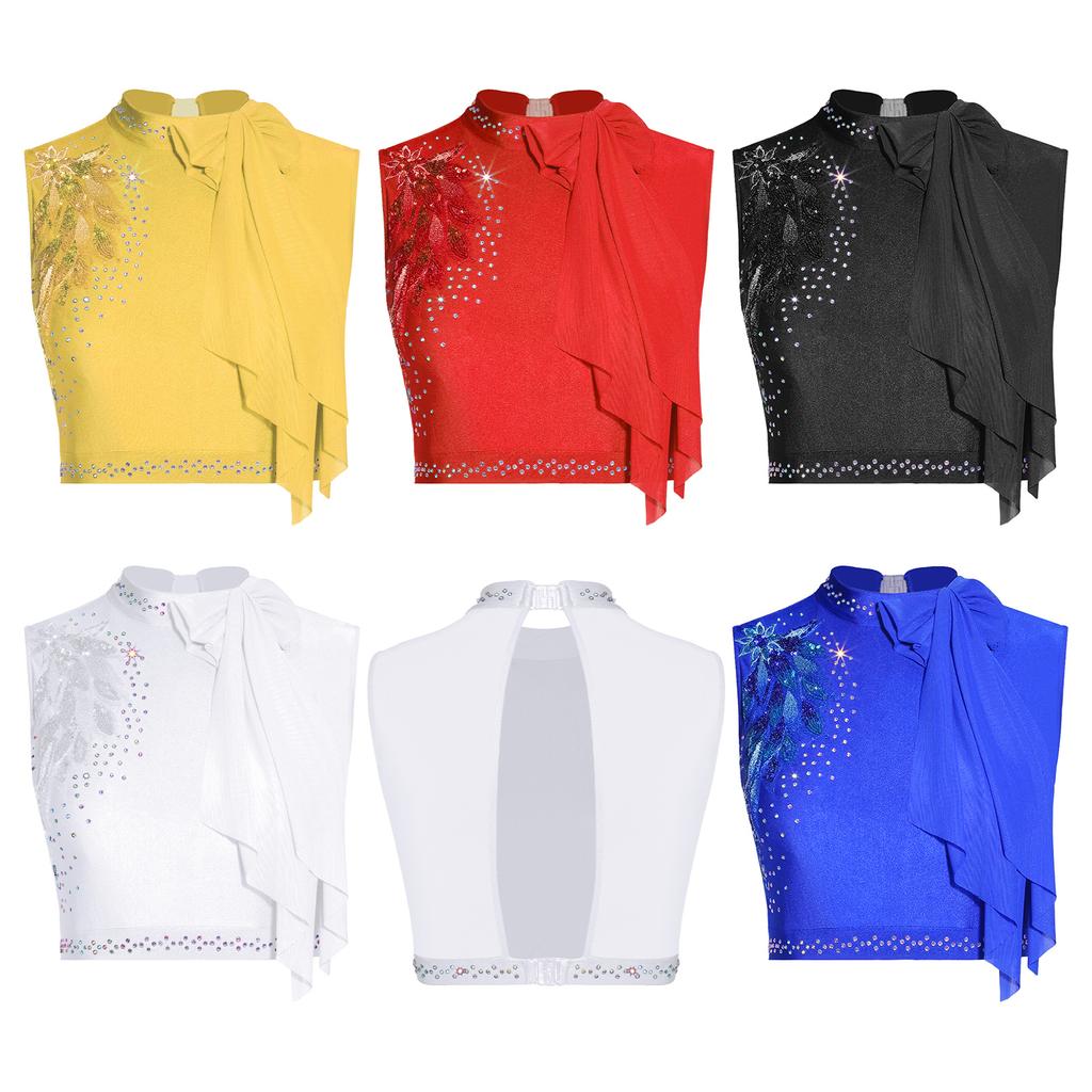 Womens Modern Dance Crop Top Sequin Embroidery Bow Decor Sleeveless Back Hollow Out Dancewear