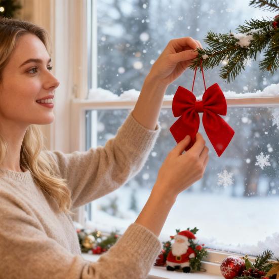 1/2Pcs Christmas Bow Velvet Soft Hanging Decoration with Bells Bows Christmas — cumpără ieftin în cadrul magazinului online Joom