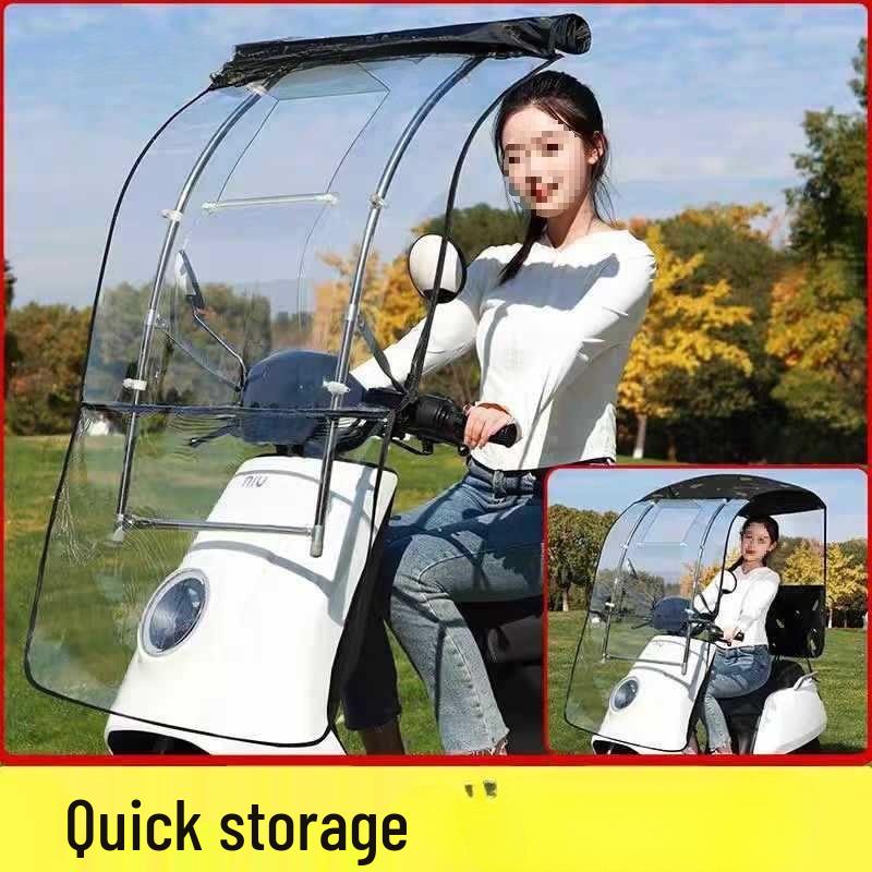 Electric Vehicle Detachable Folding Awning: Retractable Sunshade, Windproof & Rainproof for Pedal Motorcycles.