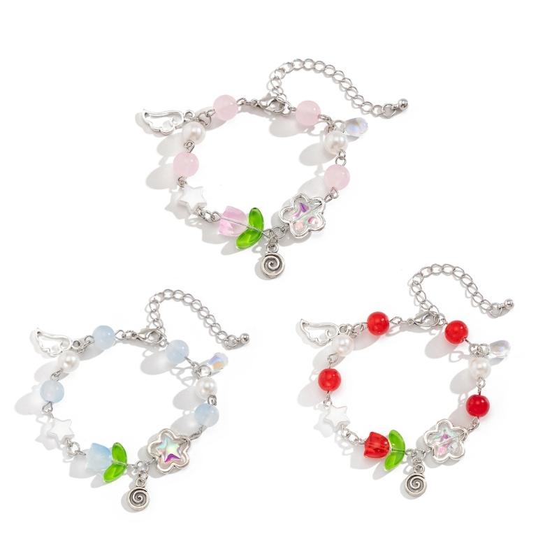 Fashionable Handmade Floral Tassels Bracelet Flower Beaded Handchain Adjustable Length Wristband Jewelry for Women