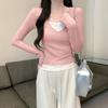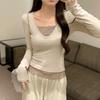 Spring new tight and thin chic white sky blue fake two-piece collar long-sleeved women's pure desire commuter top