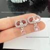 In-Stock Pink Diamond Tassel Earrings: Elegant Women's Sweet Style with Inlaid CD Letters