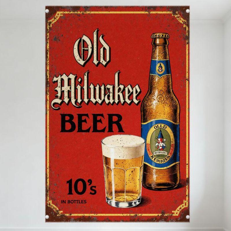 Semn Metalic Vechi Old Milwaukee Beer Cutie de Metal Roșu Rustic cu Margine Aurie, Sticlă de Bere și Ilustrație Etichetă cu Gnom - Bar Acasă Bărbat Ca — cumpără ieftin în cadrul magazinului online Joom
