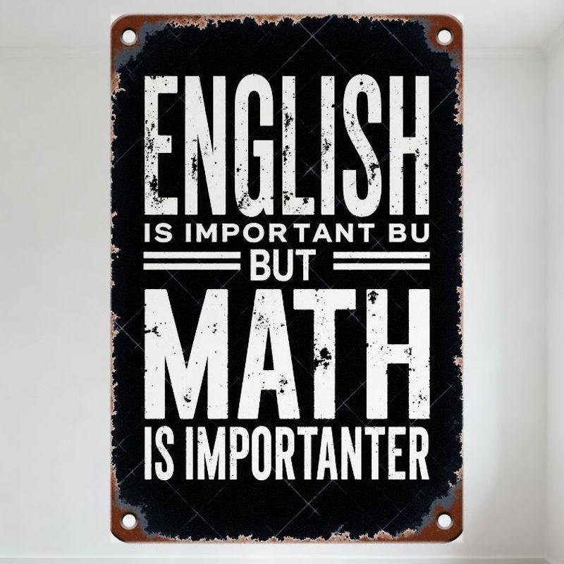 Vintage English vs Math Metal Sign Distressed Rusty Wall Plaque for Home Office Classroom Bar Man Cave Decor
