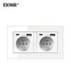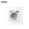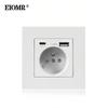EIOMR France Standard Power Socket, Single Double AC 100~250V 16A White Black Wall Type-C Usb Plugs Outlet for Home Office