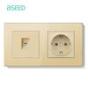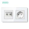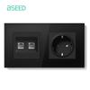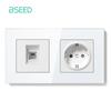 BSEED Dual Internet Sockets Single CAT6 Wall Socket EU Power Sockets Plus Network Data Computer Connecter Outlets Glass Panel