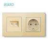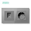 BSEED Dual Internet Sockets Single CAT6 Wall Socket EU Power Sockets Plus Network Data Computer Connecter Outlets Glass Panel — cumpără ieftin în cadrul magazinului online Joom