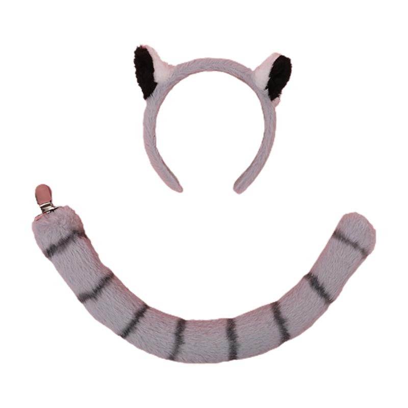Animal Raccoon Ears Headdress Tail Set Plush Handmade Costume Set Anime for Halloween Christmas Cosplay Accessories — cumpără ieftin în cadrul magazinului online Joom