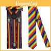 Fashion Striped Neckties for Masquerades Woman Teen Necktie+Clip on Suspenders