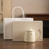 Mutton Fat Jade Style Ceramic Mug with Mountain Bird Design