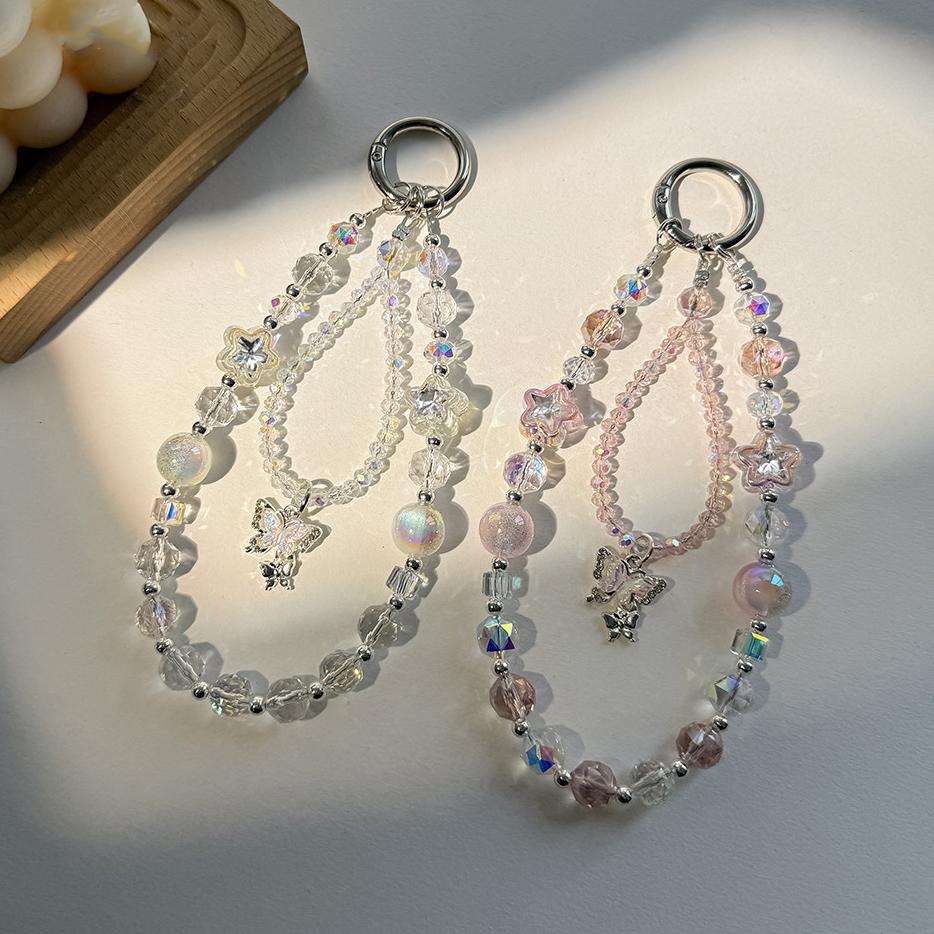 Stylish Bling Crystal Beads Butterfly Phone Strap Charm Keychain Pendant Bracelet Airpods Accessories Women Girl Hanging Cord