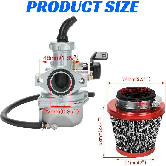 YOXUFA PZ22 Carburetor 22 mm Carb Throttle Cable Grip for 110cc 125cc ATV Pit Dirt Bike Coolster Mountopz SSR TaoTao DB14 DB24 Apollo Xpro Hawk 4