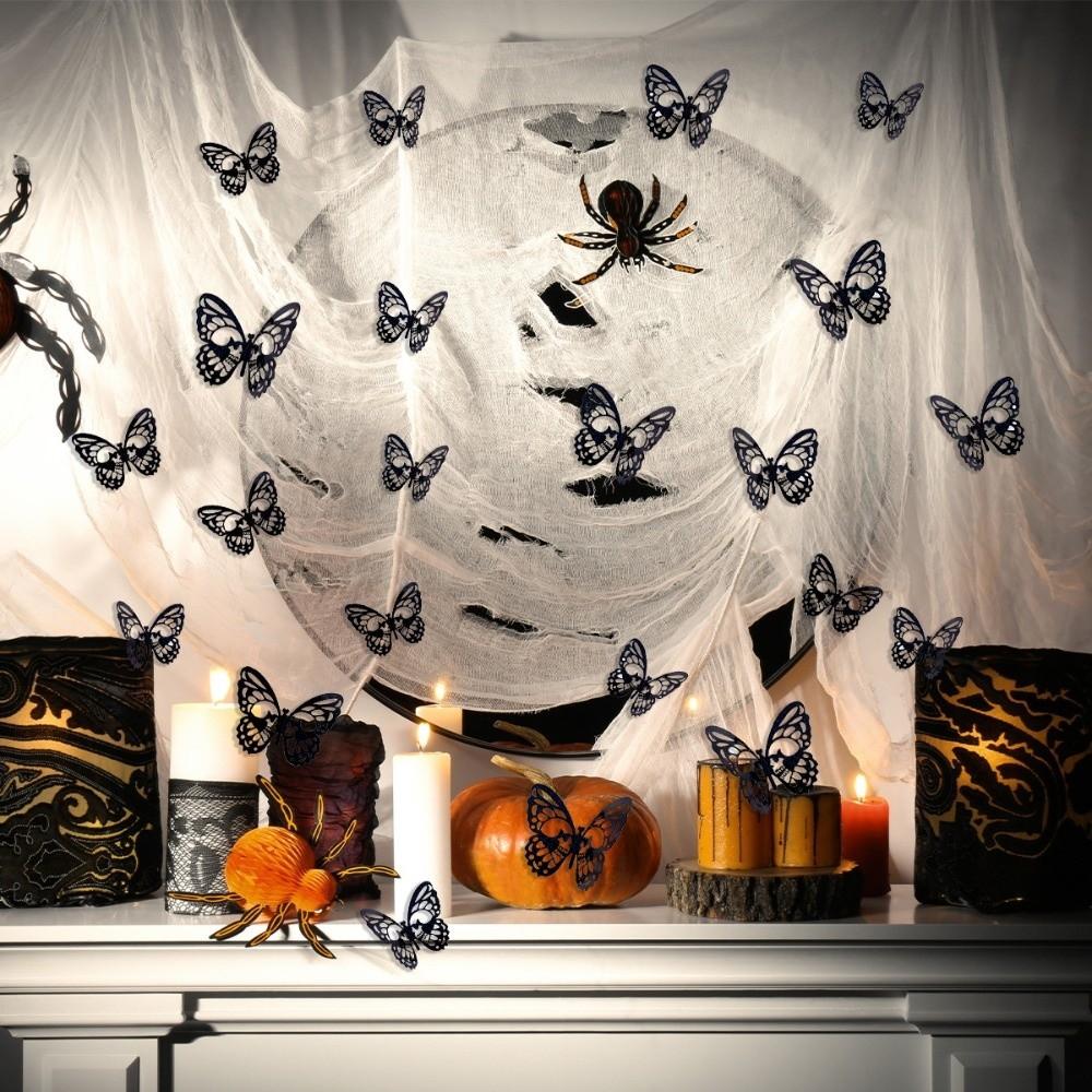 Double Layer Halloween Wall Stickers Hollow Out PVC Butterfly Skull Stickers DIY Red 3D Butterfly Wallpaper Decal