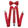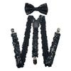 Popular Sequins Suspenders and Bowtie Set for Male with Metal Clip Weddings and Theme Parties Costume Neckwear Accessory