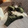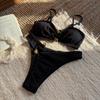 2026 Sexy Hollow Beads Solid Color Pit Strip Split Swimsuit Bikini
