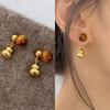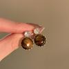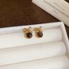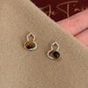 18k real gold electroplated tiger's eye stone geometric stud earrings Maillard temperament earrings earrings women