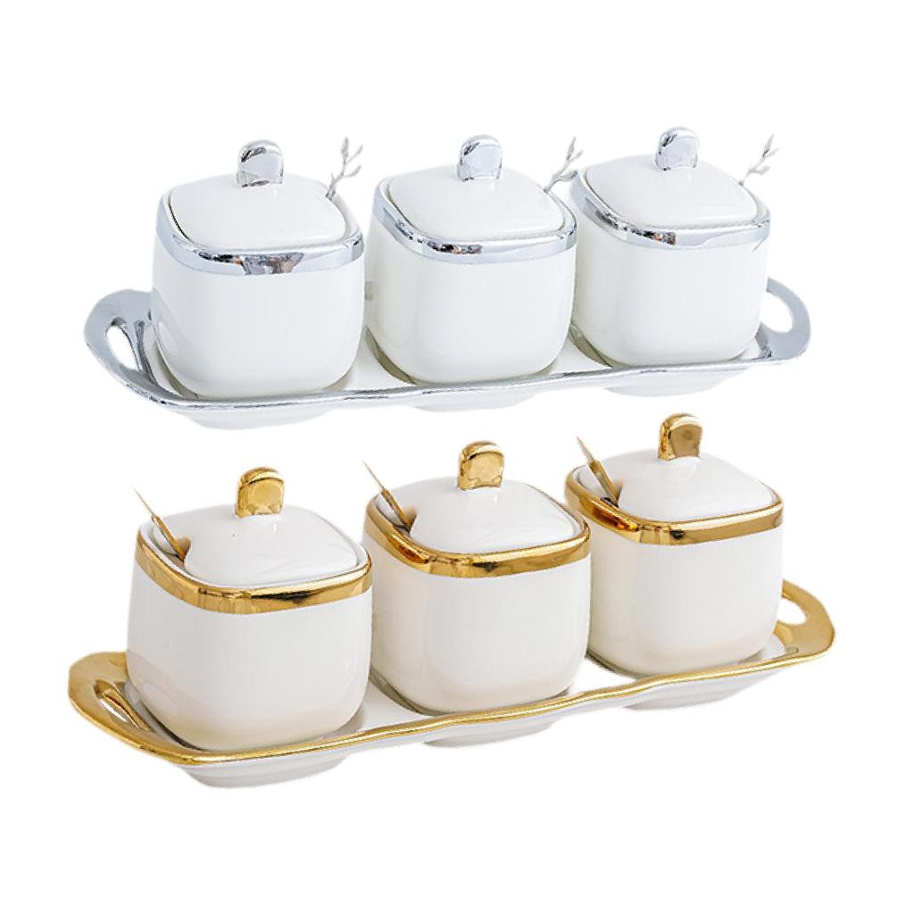 Ceramic Spice Jars Modern Pepper Seasoning Pot Box Practical Small Sugar Bowl for Restaurant Kitchen Countertop Household