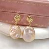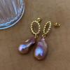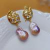 Natural colorful pink and purple baroque pearl stud earrings, special-shaped earrings, earrings, high-end romantic earrings, women's European and Amer