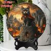 Vintage Black Cat and Book Round Metal Wall Art Zodiac Sign Home Bar Decor