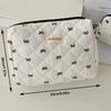 Geantă de machiaj pentru femei, model Cherry, geantă portabilă, drăguță, pentru cosmetice, toaletă, depozitare, geantă de mână din bumbac matlasată cu fermoar