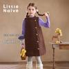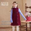 Little Naive Girl's Winter Corduroy Padded Vest Dress with Contrast Buttons
