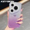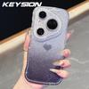 KEYSION Gradient Love Heart Wavy Phone Case for Huawei Pura 70 80 Pro 80 70 Ultra Glitter Jewelled Lens Protector Shockproof Cover