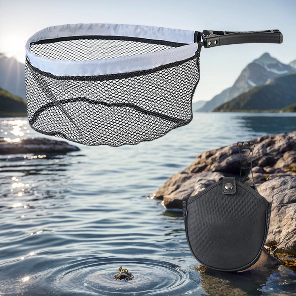 Foldable Landing Net with Non-Slip Handle Trout Net with Tackle Bag Minnow Net Outdoor Stream Fishing Tools Accessory