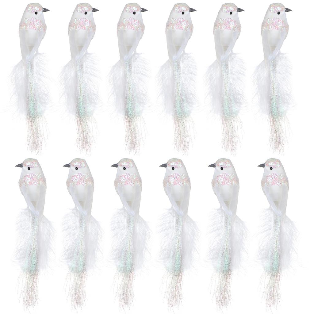 Simulated feather white bird with clip Christmas decoration