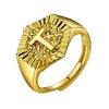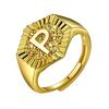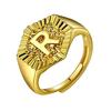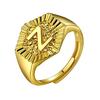 Hexagon Surface 3D Embossed A-Z Initial Letter Rings for Man Woman Adjustable Size A-Z 14k Gold Color Family Signet Jewelry