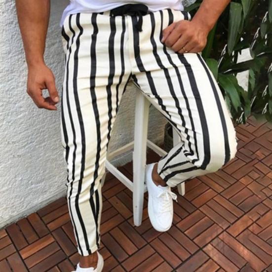 Pantaloni Skinny Bărbați Casual cu Dungă Verticală Talie Elastică Buzunare Lung — cumpără ieftin în cadrul magazinului online Joom