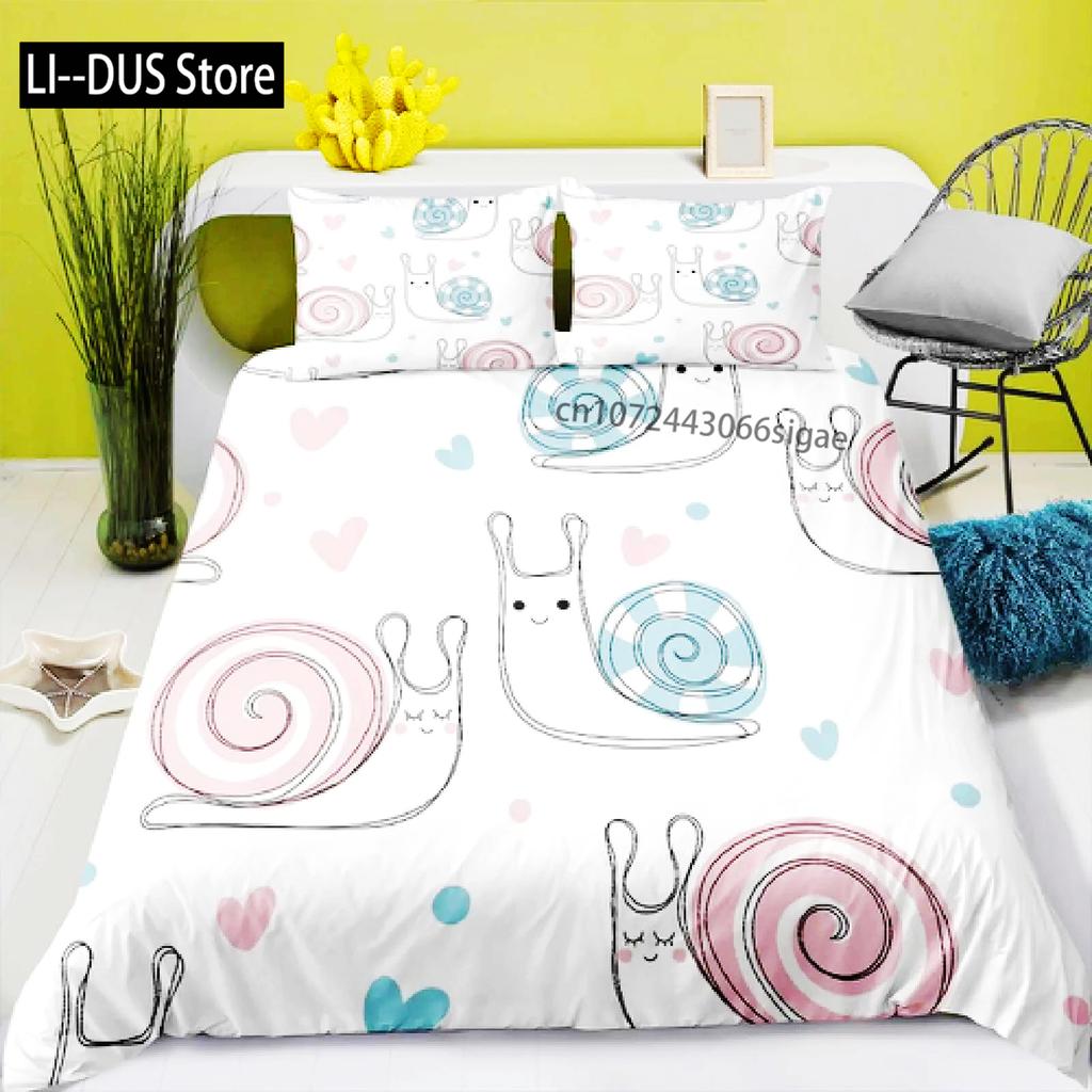 Colourful Snail Duvet Cover Set Cute Kawaii Animal Polyester Bedding Set Comforter Cover King Queen Size For Kids Boys Girls