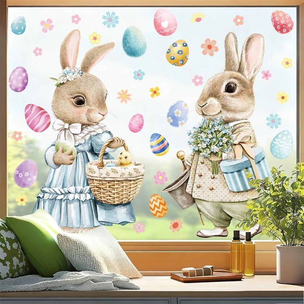 Cartoon Rabbit Bunny Glass Electrostatic Film Creative Decorative Happy Easter Bunny Decal Store — cumpără ieftin în cadrul magazinului online Joom