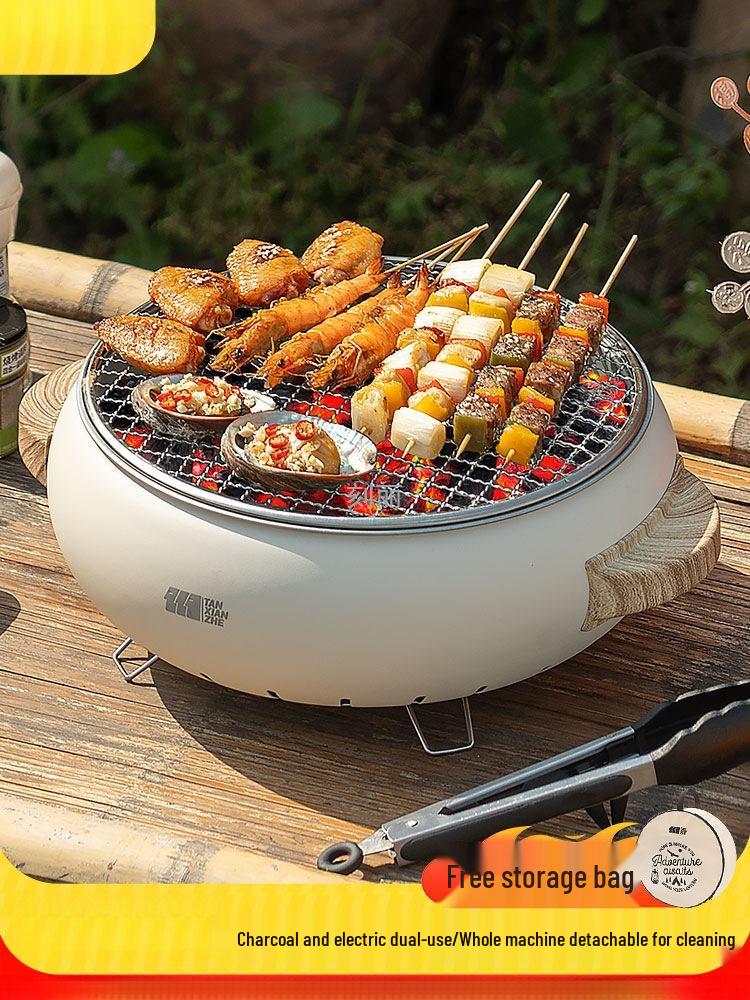 Dual-Use Electric Grill & Fire Pit: Indoor BBQ, Boiling, Baking, and Charcoal Stove Set