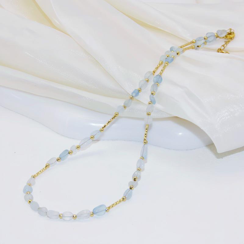 Aquamarine Star Gold Beaded Choker Necklace with Natural Stone Design — cumpără ieftin în cadrul magazinului online Joom