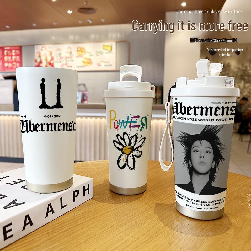 G-Dragon Insulated Stainless Steel Coffee Cup with Large Capacity and Daisy Design