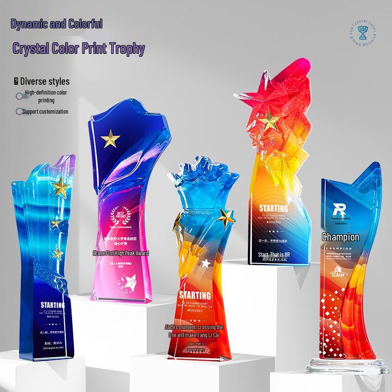 Five-Pointed Star Crystal Trophy: Full-Color Print for Outstanding Team & Employee Recognition at Annual Meeting Events — cumpără ieftin în cadrul magazinului online Joom