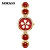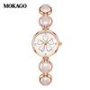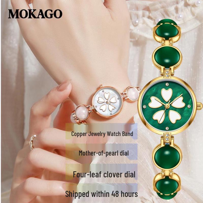 Moka Diamond Luminous Quartz Watch with Four-Leaf Clover Design, 30M Waterproof, Copper Band.