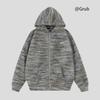 Unisex Gradient Striped Hooded Sweatshirt - Retro Winter Cardigan Style with Oil Painting Knit Design