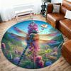 1pc Dragonfly Wildflowers Round Chair mat Area Rug - Non-Slip, Floor Mat for Office, Bedroom, home decor Christmas Gift-1002333