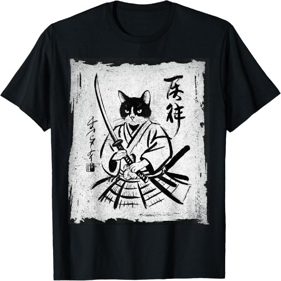 Retro Samurai Cat Ukiyo-e Warrior Art Graphic Cat Art T-Shirt — cumpără ieftin în cadrul magazinului online Joom